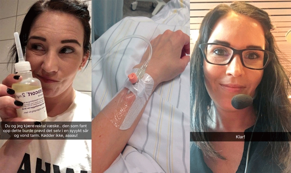 – Det er ikke akkurat med et rør oppi ræva man har lyst til å starte helgen, men i dag var dagen for Kolonoskopien på Diakonhjemmet kommet i Oslo i håp om å få noen klare svar, skrev hun i et innlegg i fjor.