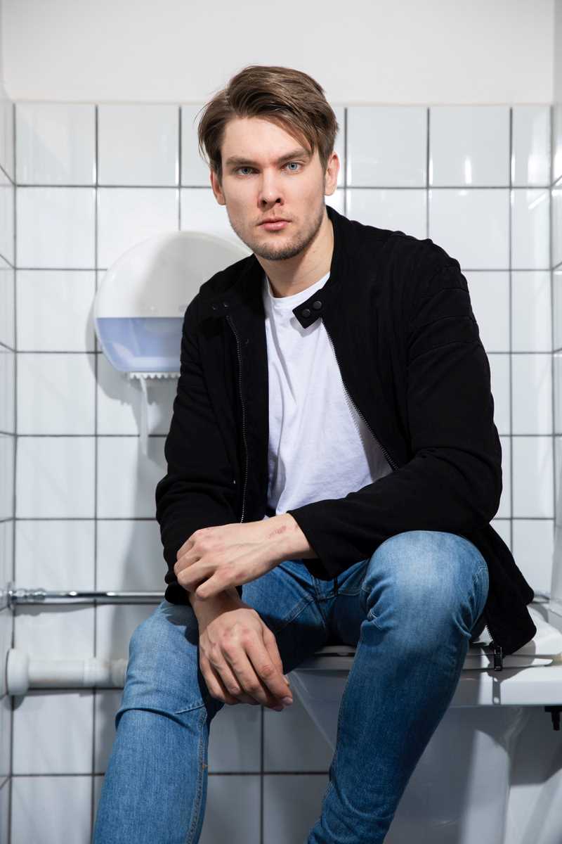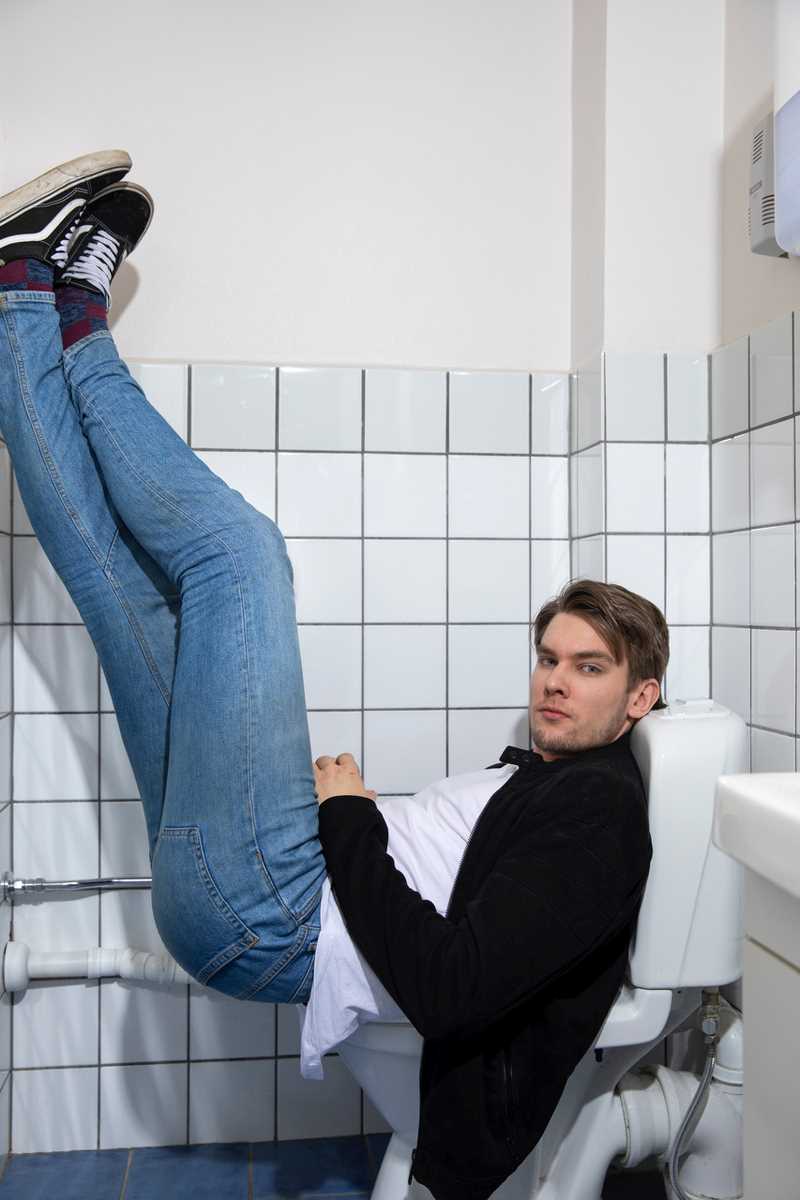 Dermed ble magasincoveret til på et toalett i Oslo, og modellen Fabian Thorsen ble så mer enn gjerne med på oppdraget.
